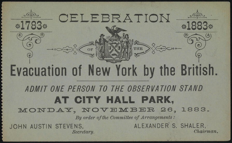 [Invitation to dinner at City Hall on November 25 in celebration of the evacuation of New York by the British.]