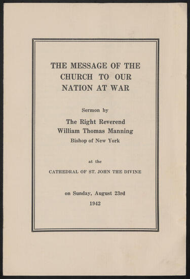 Sermon by the Right Rev. William T. Manning, D.D. Bishop of New York at the Opening of the Entire Length of the Cathedral of St. John the Divine