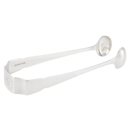 Sugar tongs with tapering bow-shaped handle and elliptical bowl ends. Inscription: Engraved on bows obverse: MO. Mark: Marked on handle reverse: C.V.G. FORBES / N. BOGERT.