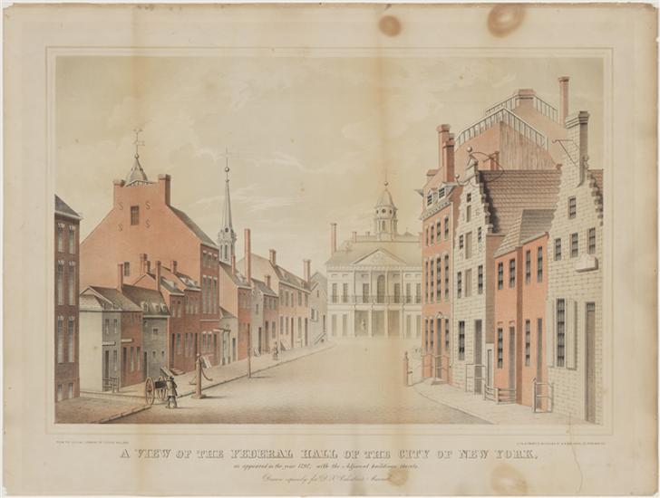 A View of the Federal Hall of the City of New York, as it appeared in the year 1797, with Adjacent buildings thereto.