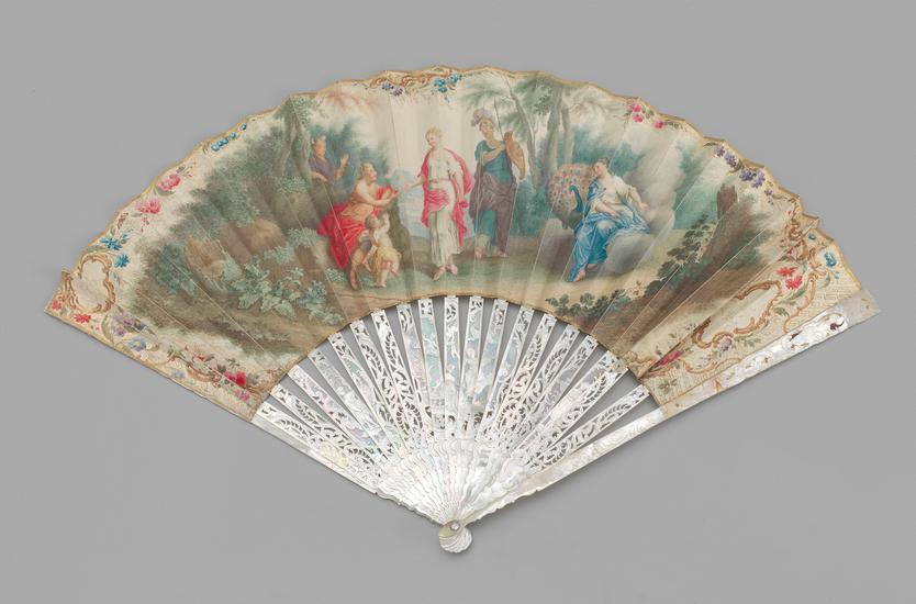 Folding fan of painted paper leaf with commemorative portrayal of Ferdinand VII of Spain