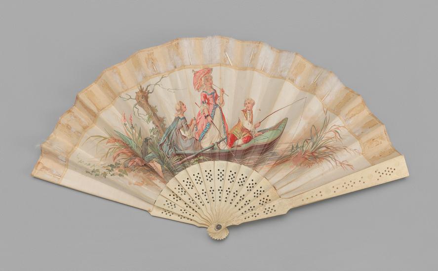 Folding fan of cream hand-painted silk palmette-shaped leaf