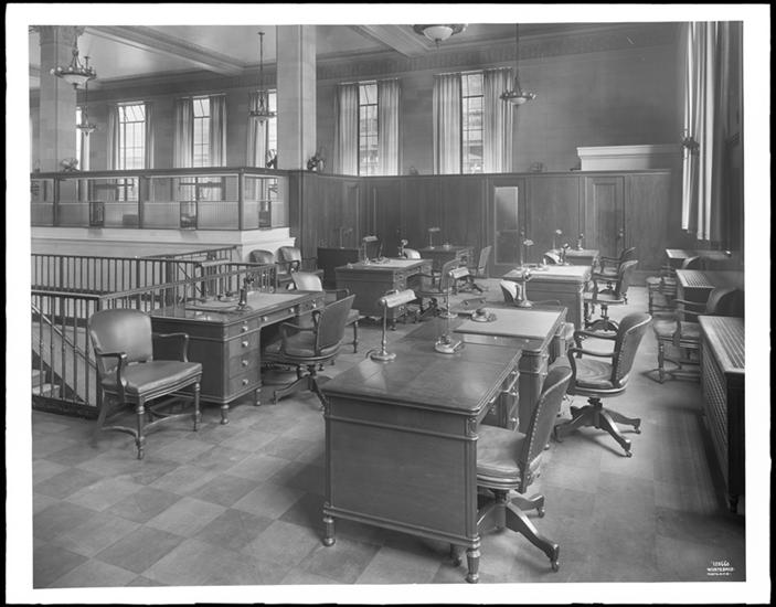 West Broadway and Chambers Street. Fidelity Trust Co., view towards safe deposit.