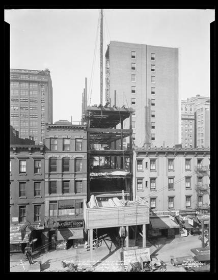West 42nd Street at the corner of 8th Avenue. Corn Exchange Bank, progress view.