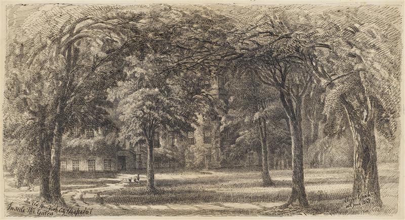 'Inside the gates of the old city hospital, may 28, 1869', by eliza greatorex.