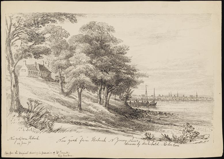 New York Harbor from Hobuck N Jersey Shore, drawn by Archibald Robertson