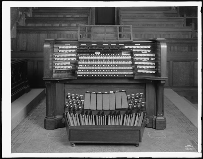 16th Street and Stuyvesant Square. St. George's Protestant Episcopal Church. Organ console from front and side.
