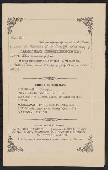Society of Tammany or Columbian Order Annual Celebration of the 111th Anniversary of American Independence
