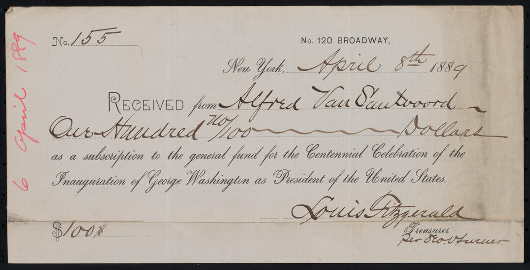 Centennial Celebration of the Inauguration of George Washington as President of the United States.