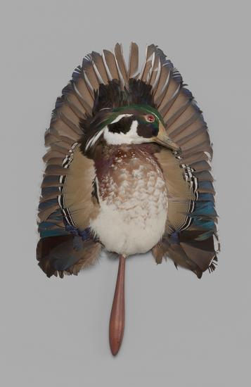 Fixed feather paddle fan of white marabou and central taxidermied hummingbird