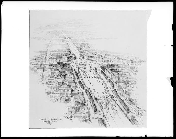 Hudson River Bridge, N.Y. Plaza approach, rendering by Cronin, 1926.