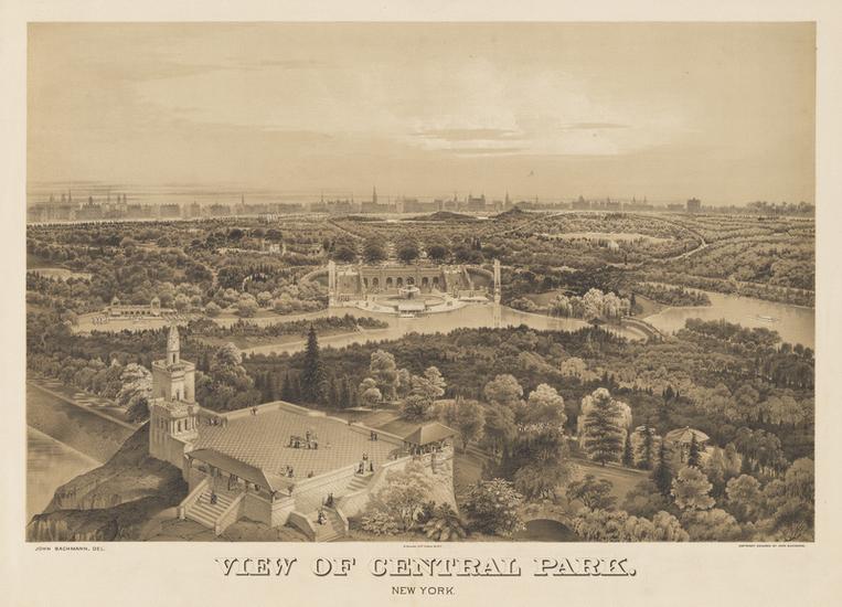 Birds Eye View of Lake Manhatta and Old Reservoir Central Park