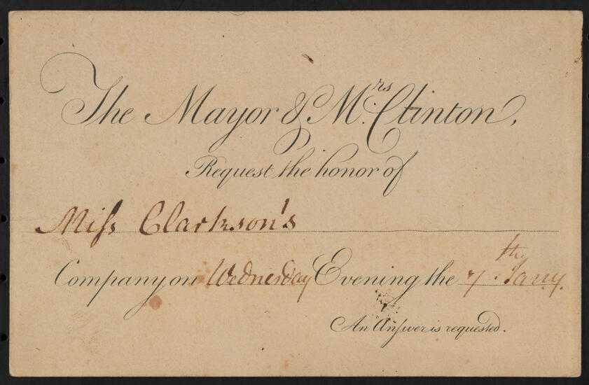 [Mr. and Mrs. Elihu Chauncey request the pleasure of the Misses Pierrepont's company.]