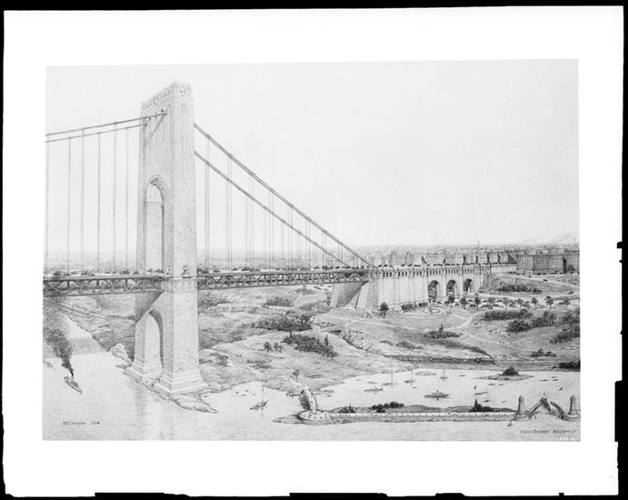 Hudson River Bridge. Rendering by John T. Cronin 1927, revised Feb. 29, 1929.