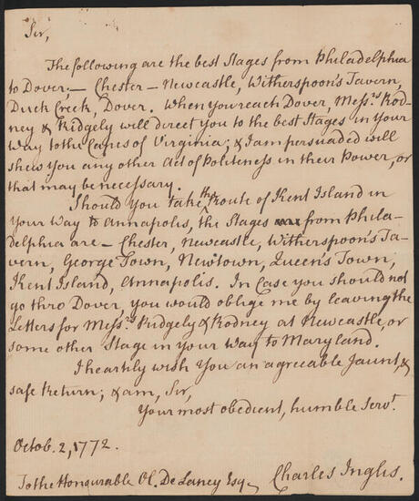 Letter from Oliver De Lancey to his father, Oliver De Lancey, February 18, 1774