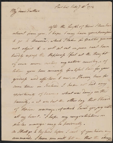 Letter from Oliver De Lancey to his father, Oliver De Lancey, June 27, 1775