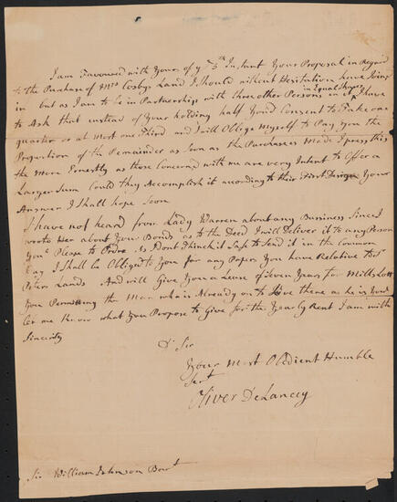Letter from Oliver De Lancey to his nephew, John Peter De Lancey, March 2, 1783
