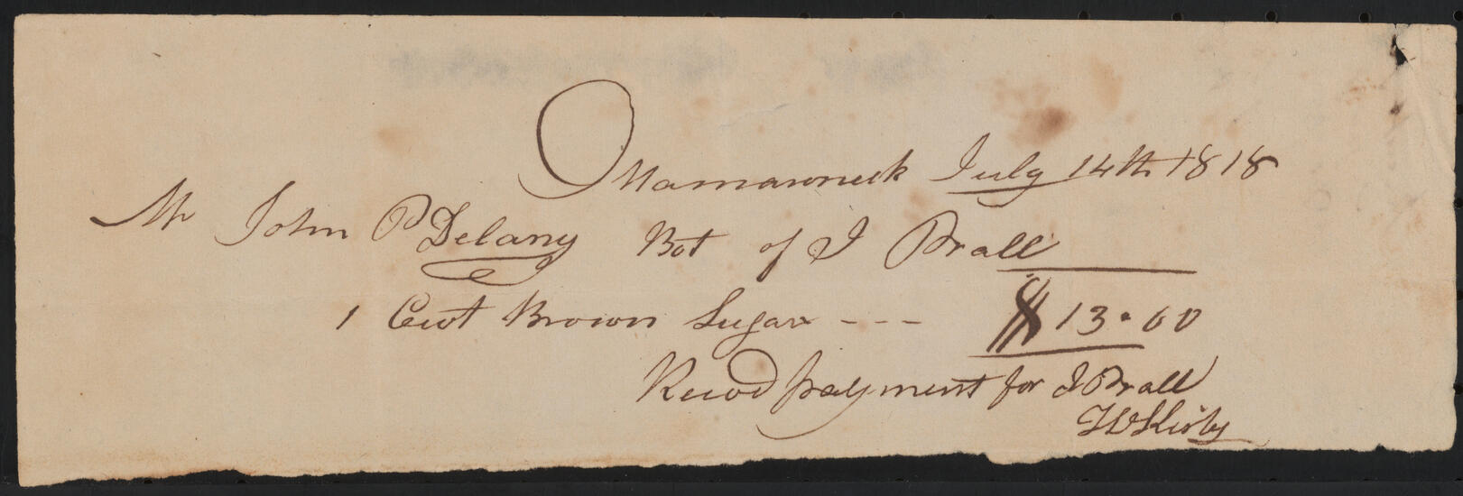 Receipt issued to John Peter De Lancey by Monmouth Lyon, December 14, 1816