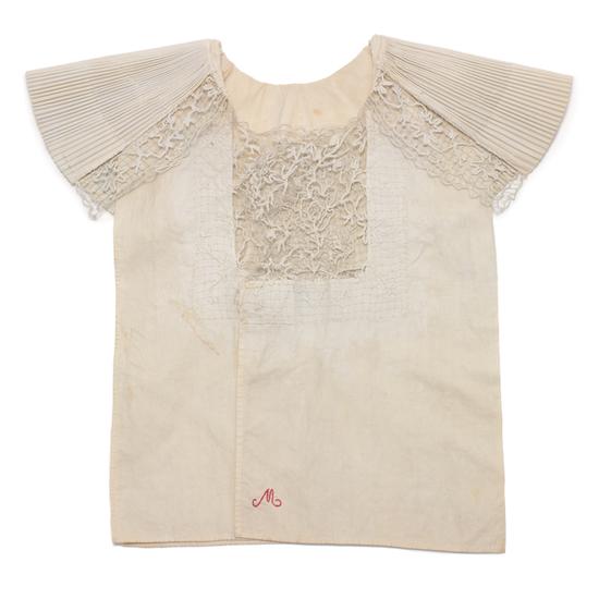 Evening ensemble in white silk and linen blend, comprising middy blouse and skirt
