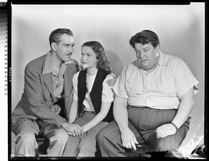 [Lauren Gilbert as Fielding Carlisle, Judith Parrish as Lane Ballou and Francis Felton as Titus Semple in "Flamingo Road".]