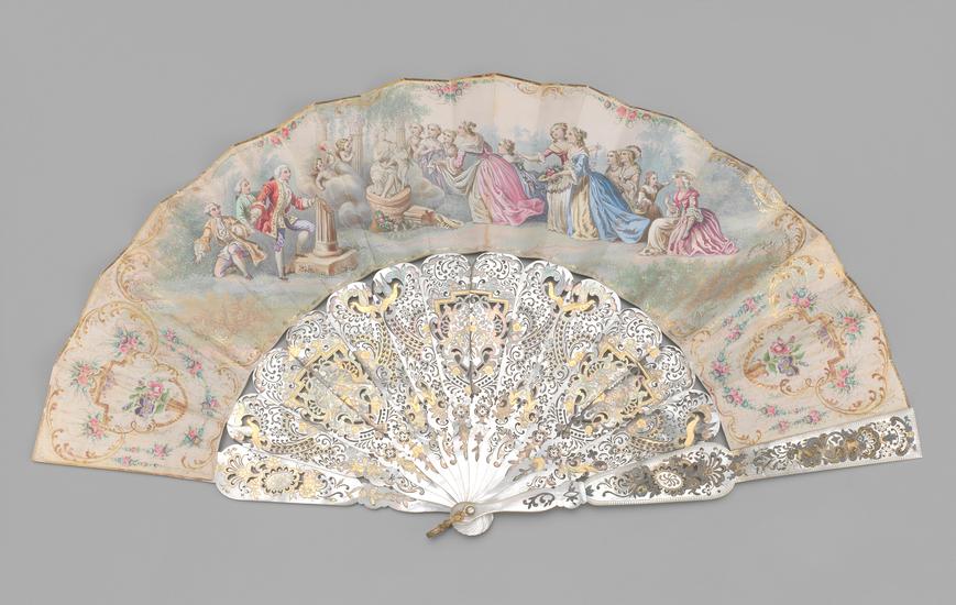 Painted folding fan with 18th-century pastoral scene