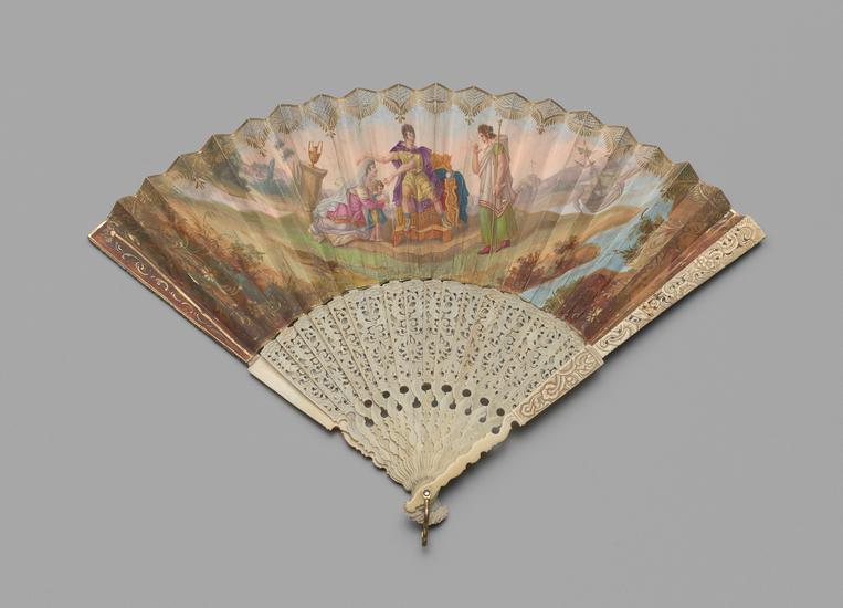 Folding fan with Empire-style painted scene of Cupid and Psyche