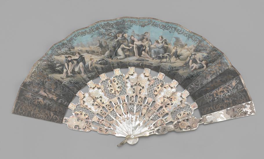 Folding fan with hand-painted paper leaf depicting the Judgment of Paris