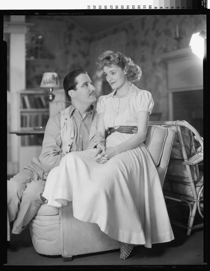 [Kenneth MacKenna as Gordon, Linda Watkins as Penny and Irene Purcell as Tina in "Penny Wise".]