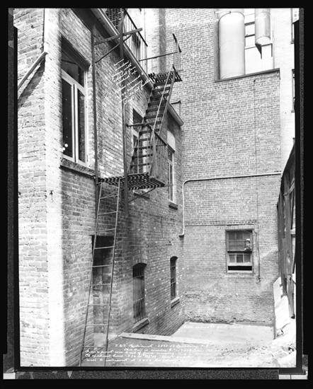 #536 West 111th St. N.Y.C. View Looking North Through Westerly Air Court to 536 West 111 St. and Showing Rear of "Z & Z" Restaurant at #2848 Broadway to the West Showing Exhaust Fan at Kitchen Window