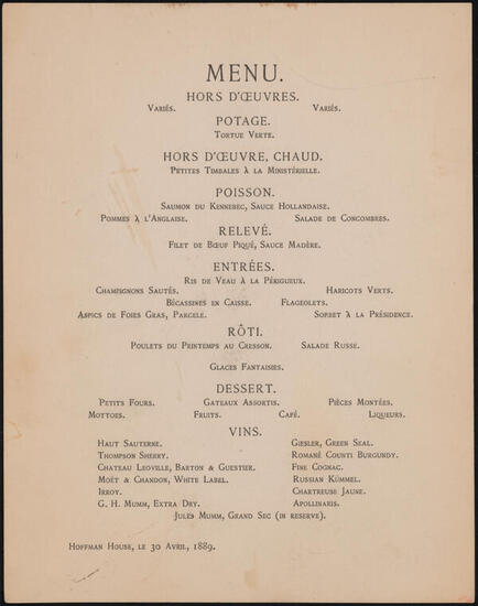 Banquet given in honor of the Centennial of the Inauguration of George Washington as President of the United States.