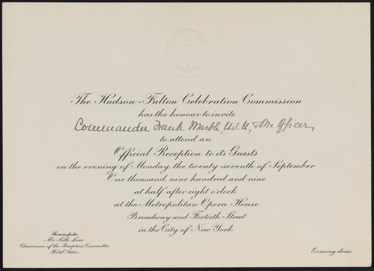 [Invitation to be a guest of the Hudson-Fulton Celebration Commission.]