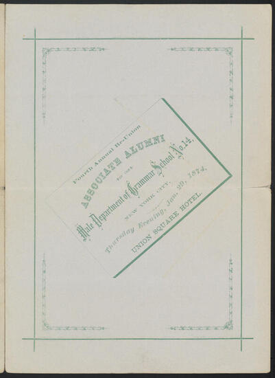 Re-Union of the Associate Alumni of the Male Dept. of Grammar School No. 14, New York City