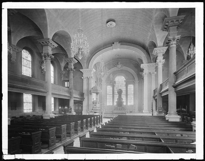 Vesey Street and Broadway. St. Paul's Chapel, chancel after restoration from center aisle.