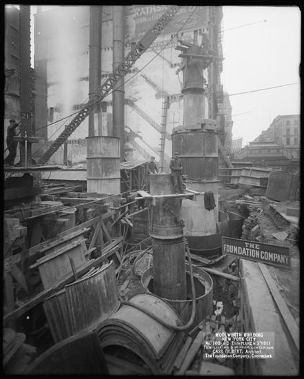 Woolworth Building, From Center Run Looking S. W. [Construction zone.]