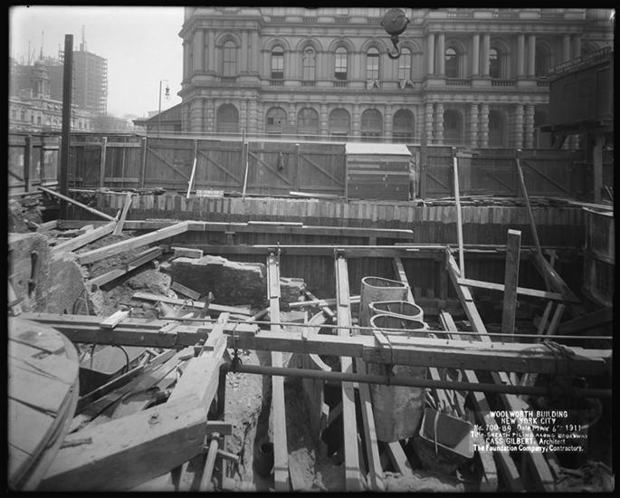 Woolworth Building, Driving Sheath, Piling N. Side [Construction zone.]