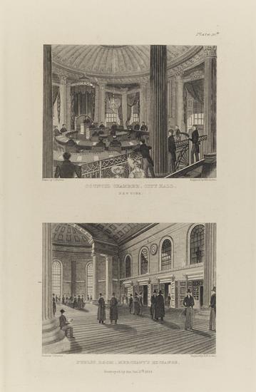A. St. Paul's Church, Broadway; B. Merchant's Exchange, Wall St.