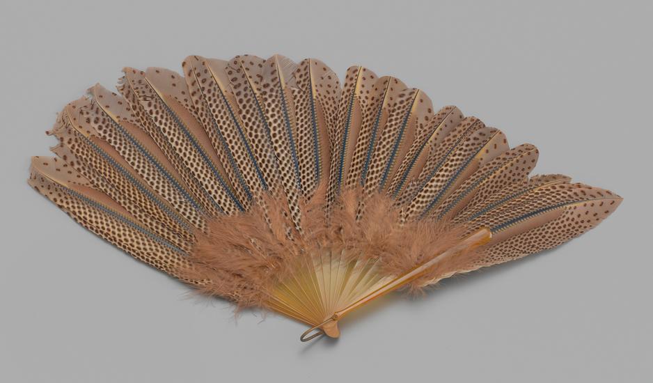 Folding feathered fan of Argus pheasant feathers