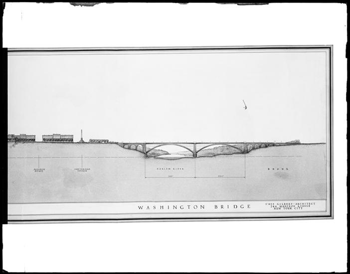 Hudson River Bridge. Rendering by John T. Cronin 1927, revised Feb. 29, 1929.