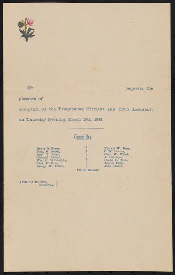 [The honor of the company of Mrs. & Miss Vandenberg and friends, is respectfully solicited to the Assemblies, to be given at Almacks.]