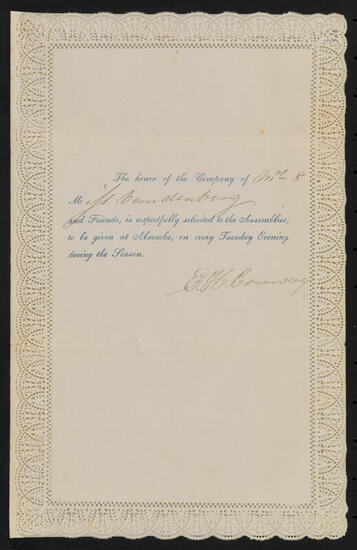[The pleasure of Miss Eleanor Hewitt's company is requested at the First Assembly.]