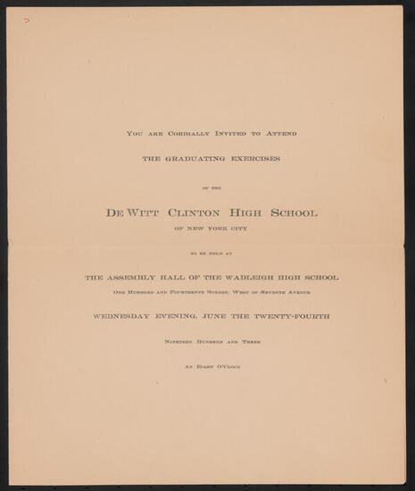 The DeWitt Clinton High School, Borough of Manhattan. Fourth Annual Graduating Exercises