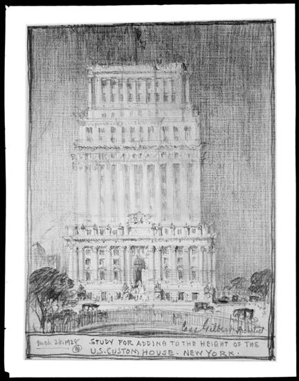 U.S. Custom House, rendering of Bowling Green elevation, dated 1/23/1900.
