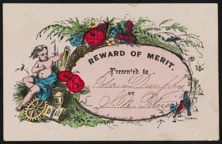 [Reward of merit presented to Clara Thorburn by her French teacher.]