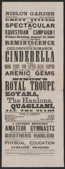 Saturday evening, August 9, 1856. Grand gala night for the first benefit in America of Mlle. Robert on which occasion the wonderful Ravels and young Hengler will appear