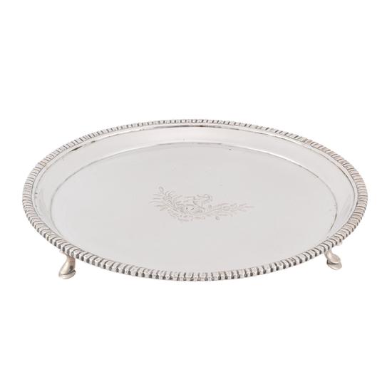 Circular salver with everted sides edged with gadrooning on three cast hoof feet. Inscription: Engraved on obverse with Bayard Crest. Mark: Marked on underside of base: New-York / GILBERT / W.G.