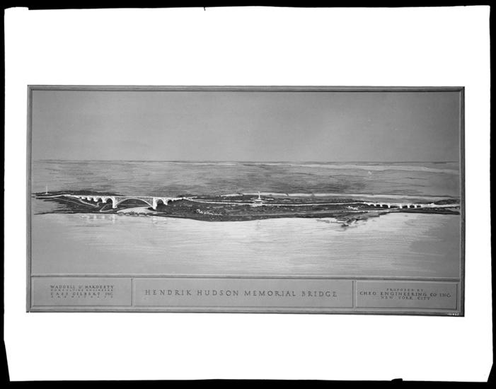 Plan, Hendrik Hudson Memorial Bridge. Rendering dated 1928 by J.R. and G.S.D.