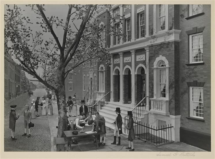 [Stone Street, 1659, looking toward Whitehall. Two photographs of a miniature group installed in the J. Clarence Davies Gallery at the Museum of the City of New York]