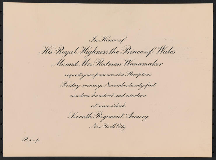 Dinner in Honor of His Royal Highness Edward Prince of Wales