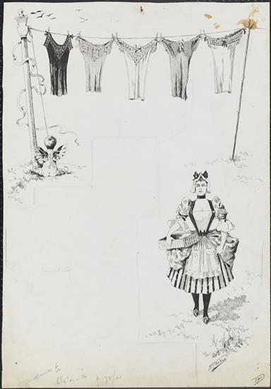 [Sketch of a Woman Standing Between Two Men in an Eastern Setting].
