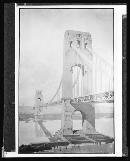 Hudson River Bridge. Rendering by John T. Cronin 1927, revised Feb. 29, 1929.